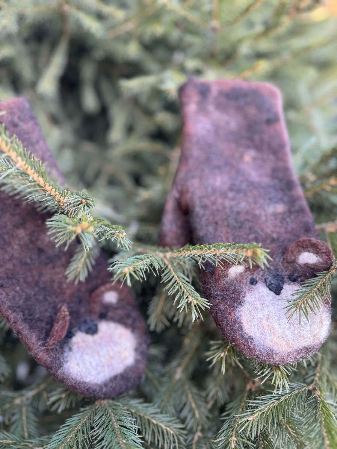Чудесные мишки для хорошего настроения в холодный зимний день. Тёплые варежки из мериносовой шерсти, пухом яка и кудряшками ягненка.