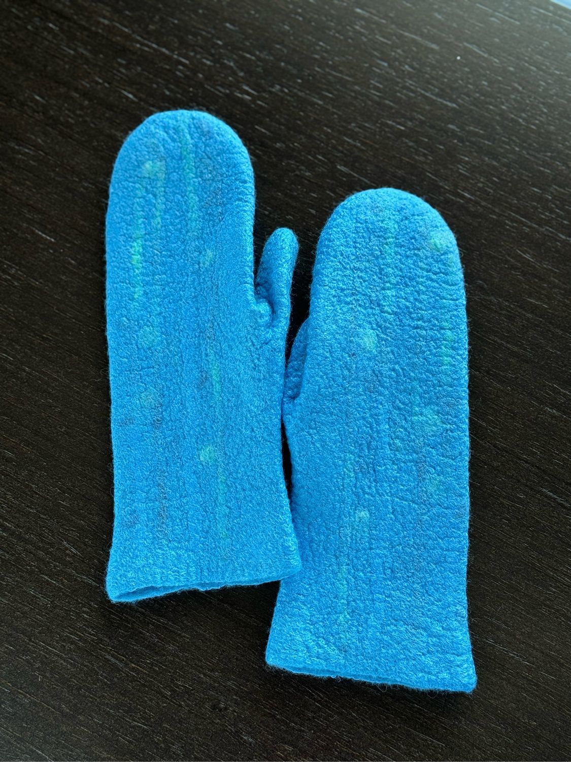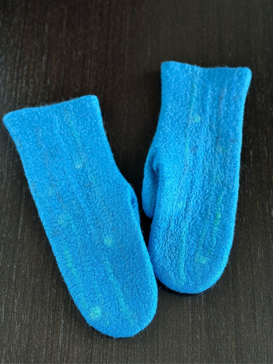 Варежки красивого насыщенного голубого цвета, цвета океана. Сваляны из мериносового сливера, фактурной пряди и волокон вискозы.