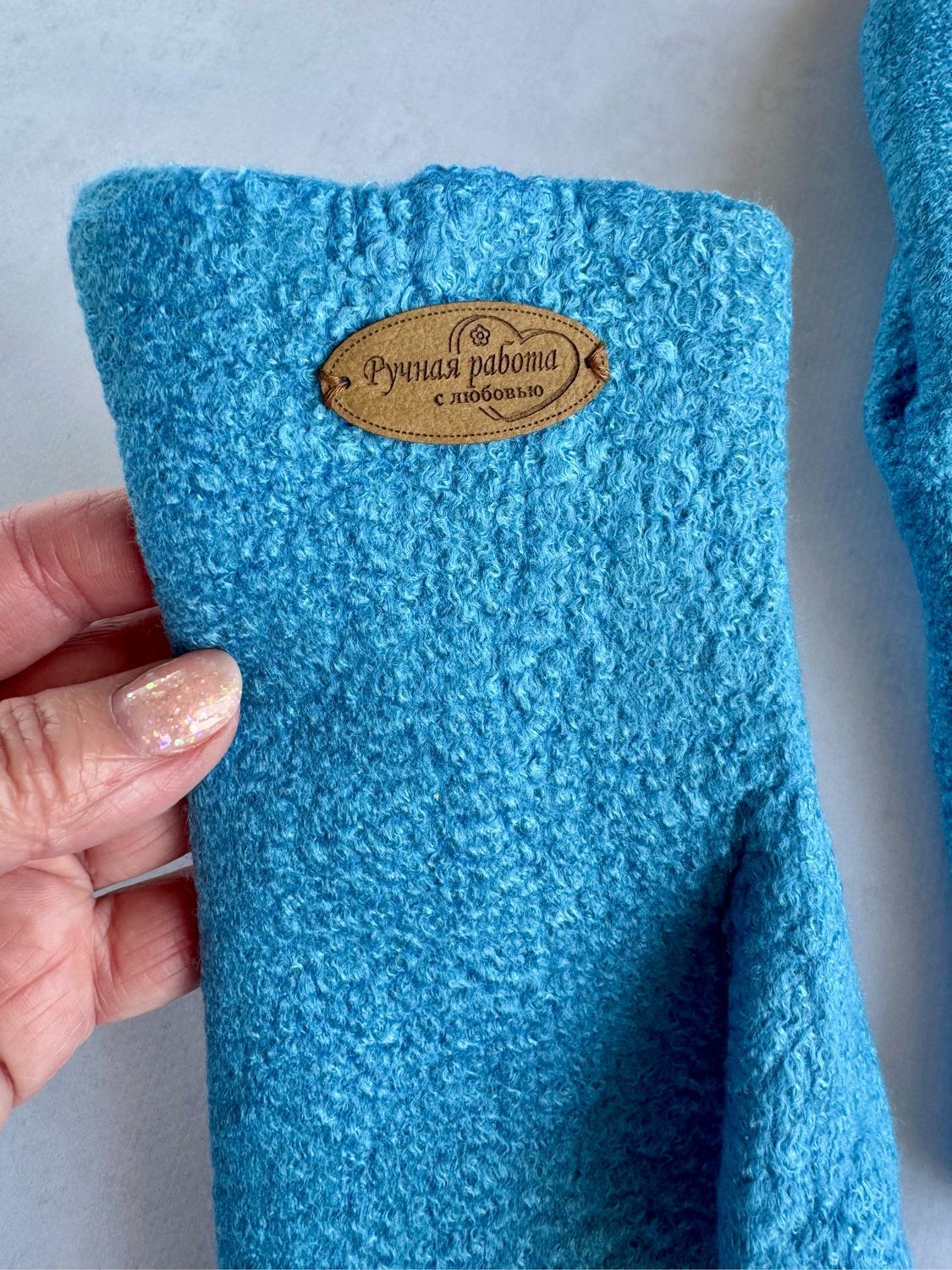 Варежки красивого насыщенного голубого цвета, цвета океана.