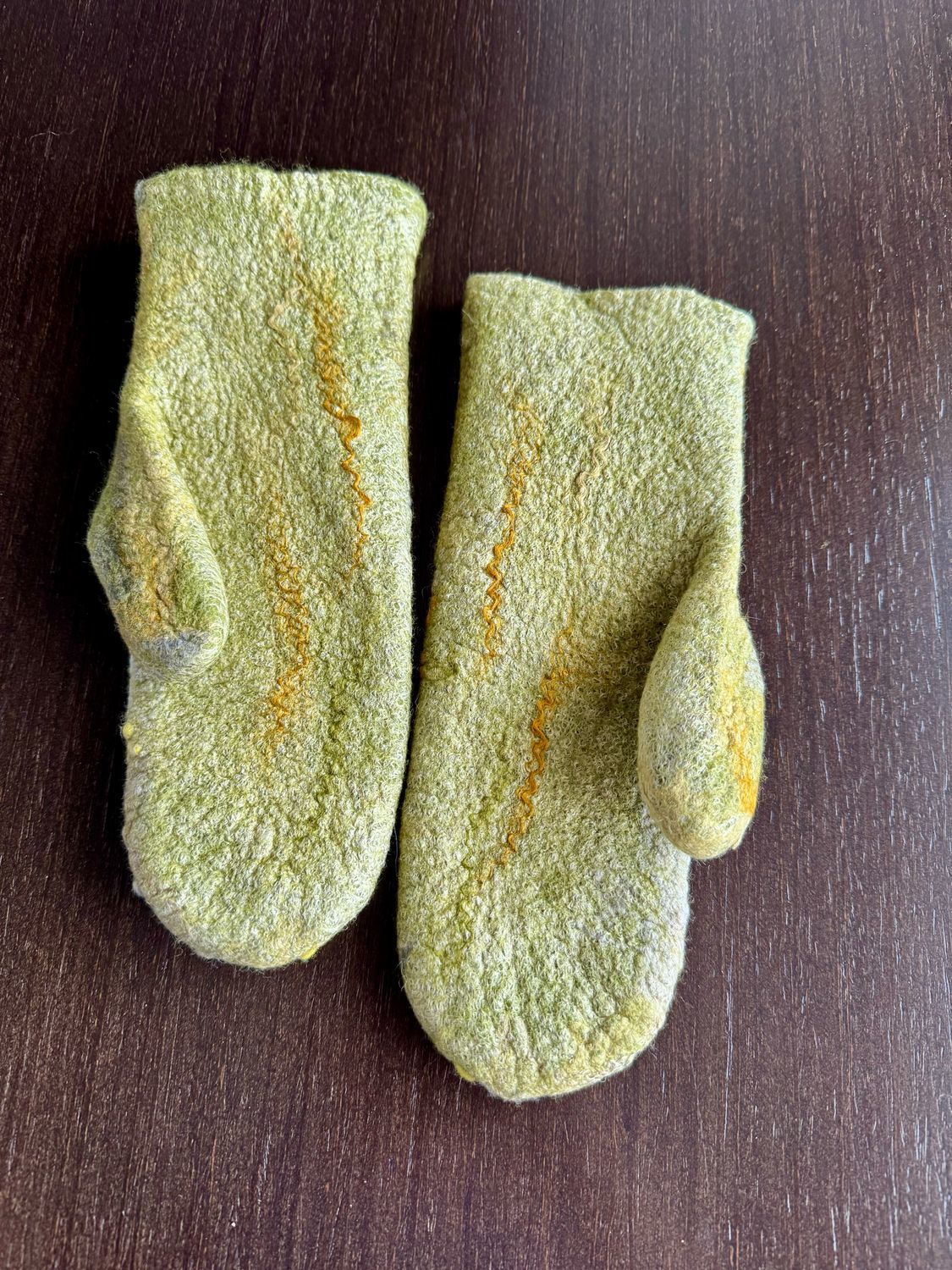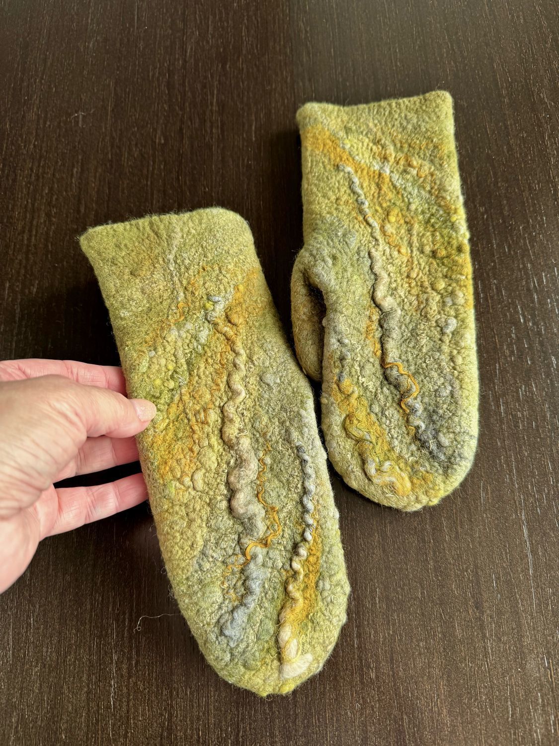 Варежки сваляны из мериносовой шерсти без дополнительного утепления. На заказ делаю с добавлением пуха яка или верблюжонка, по вашим меркам.