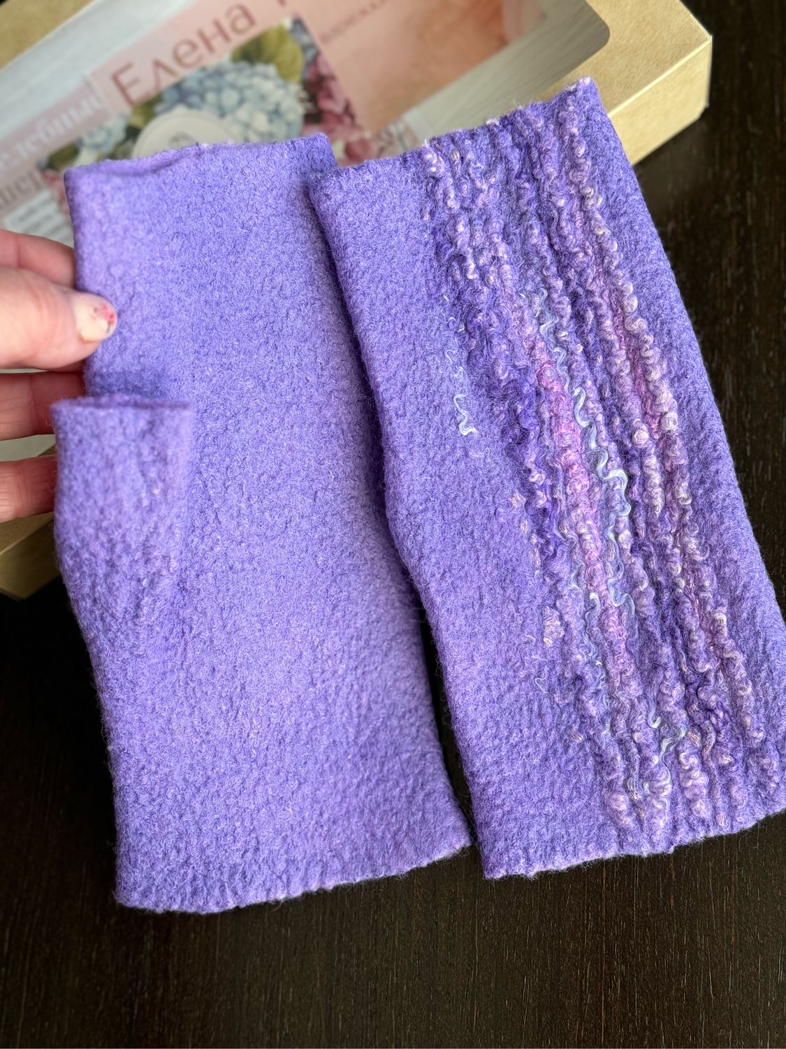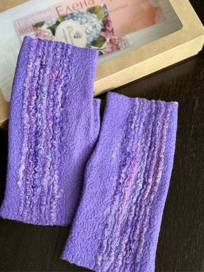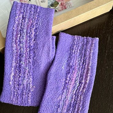 Митенки валяные из шерсти Сирень