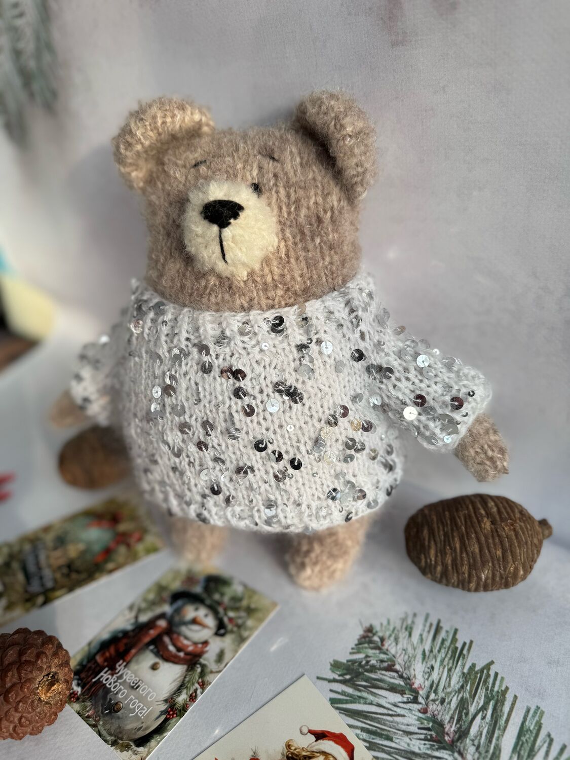 Мишка вязаный из альпаки