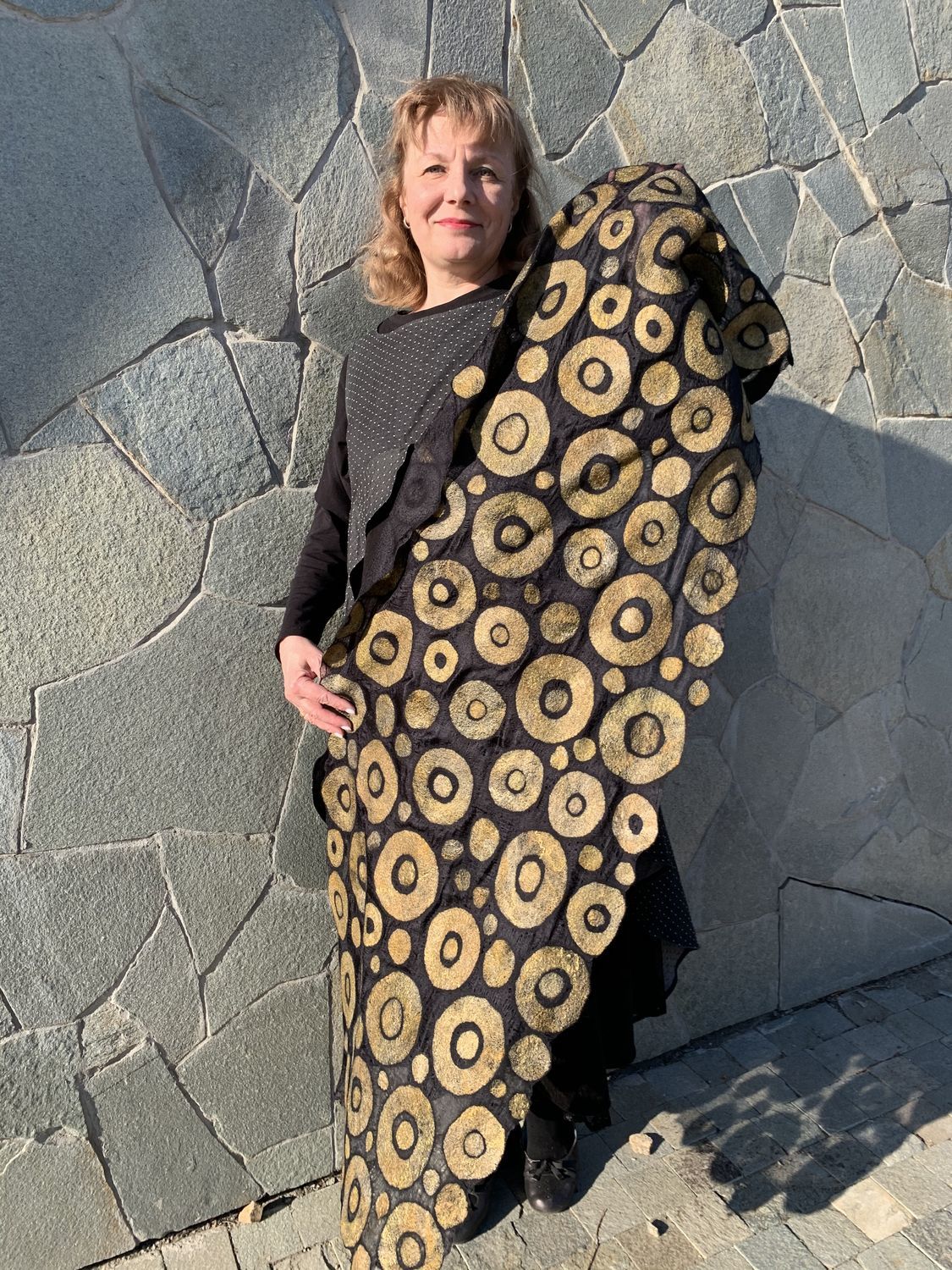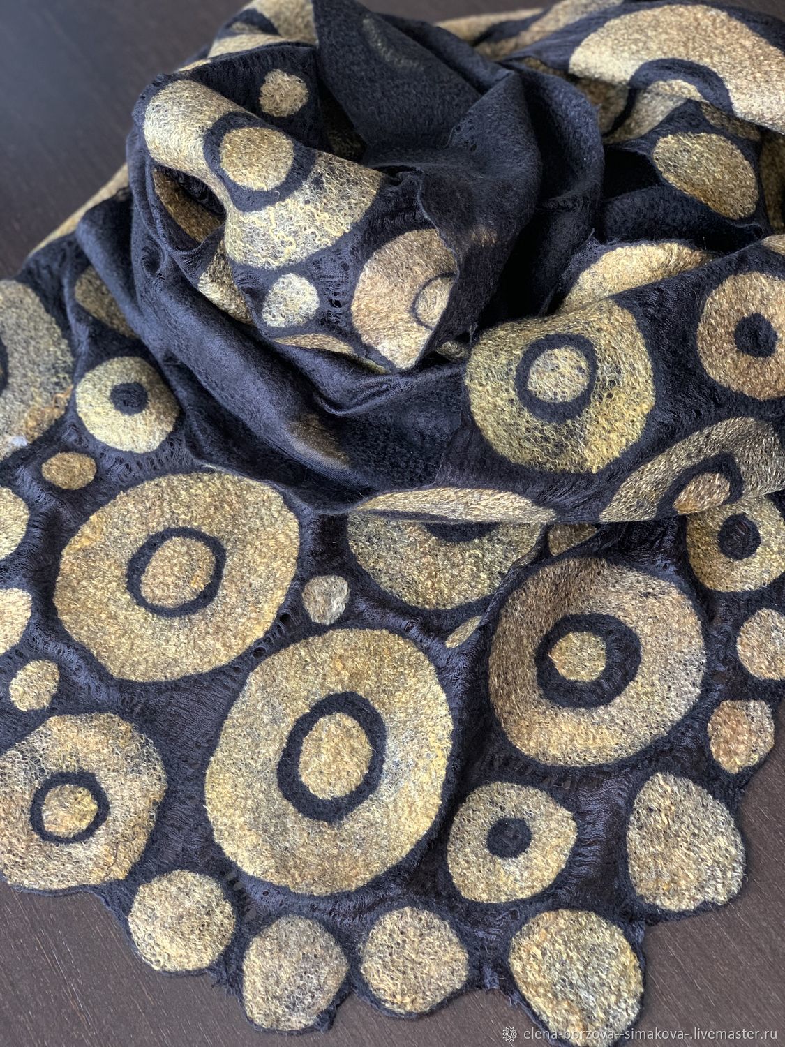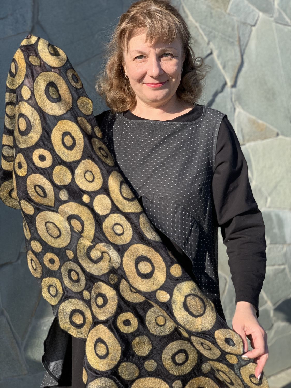 Палантин свалян из нежнейшей мериносовой шерсти, маргиланского шёлка ручного крашения и волокон вискозы.